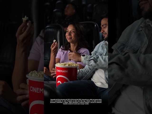 Balde Primera Compra: Disponible del 05 de diciembre del 2025 al 30 de abril del 2026. Promoción no es válida con popcorn dulce, mixto o especialidades de sabor. Promoción no aplica para Web, App y Kioskos y no aplica con otros descuentos, promociones o cupones. Válido únicamente en dulcería Cinemark y terceros de domicilio. Consulta en dulcería el precio para recargar tu balde.