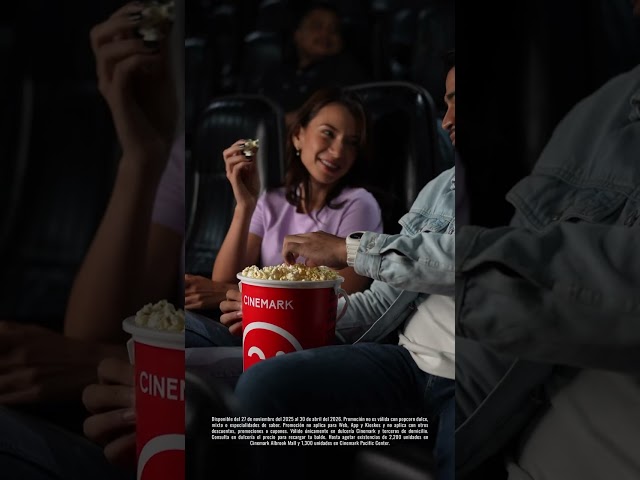 Disponible del 27 de noviembre del 2025 al 30 de abril del 2026. Promoción no es válida con popcorn dulce, mixto o especialidades de sabor. Promoción no aplica para Web, App y Kioskos y no aplica con otros descuentos, promociones o cupones. Válido únicamente en dulcería Cinemark y terceros de domicilio. Consulta en dulcería el precio para recargar tu balde. Hasta agotar existencias de 2,200 unidades en Cinemark Albrook Mall y 1,300 unidades en Cinemark Pacific Center.